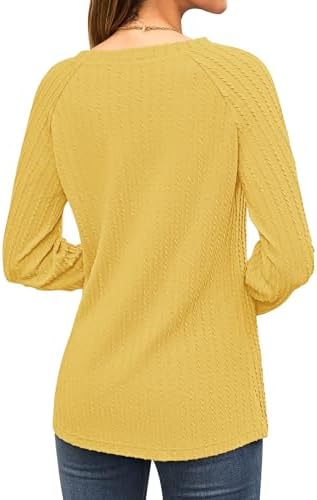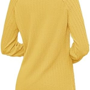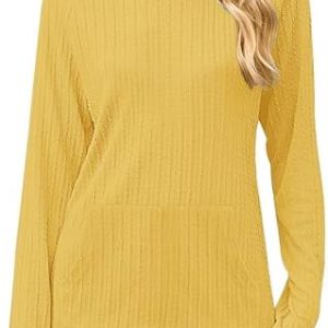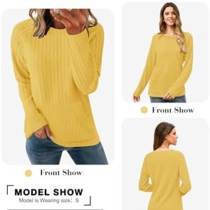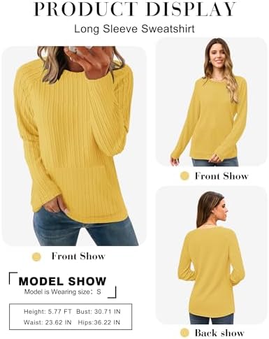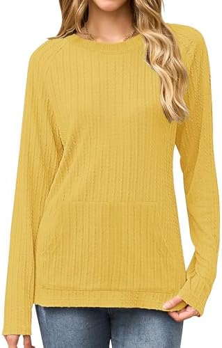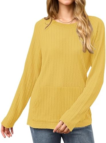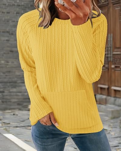 2025 New Womens Long Sleeve Shirts Casual Crew Neck Lightweight Pullover Tops With Pockets Yellow S at Women’s Clothing store