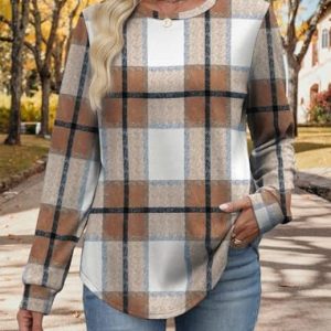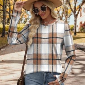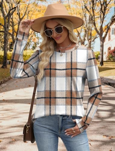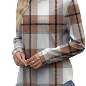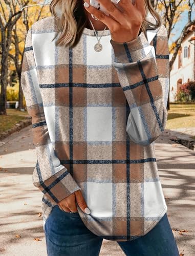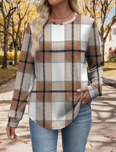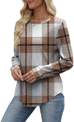Early Fall Fashion Must Haves Outfits for Women 2025 Vacation Long Sleeve Tops Winter Clothing Halloween Sweatshirts Festival Brown Plaid L : Clothing, Shoes & Jewelry