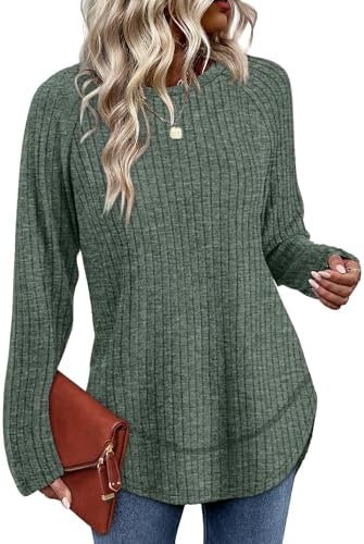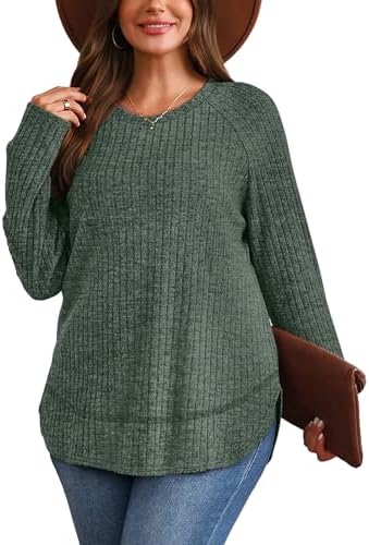 Fall Tops for Women 2025 Plus Size Long Sleeve Shirts Christmas Sweaters Round Neck Winter Clothing Green 2XL : Clothing, Shoes & Jewelry