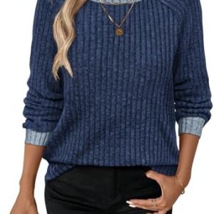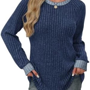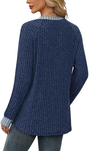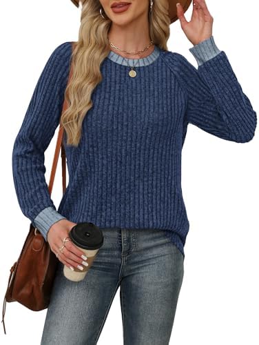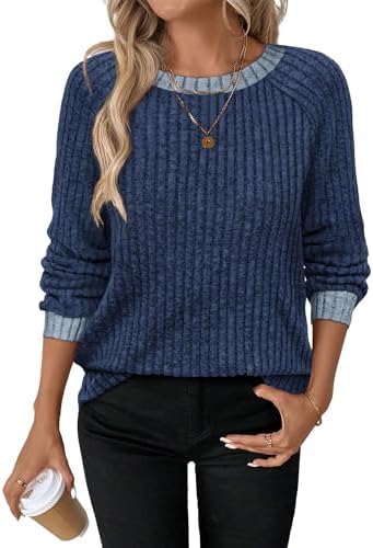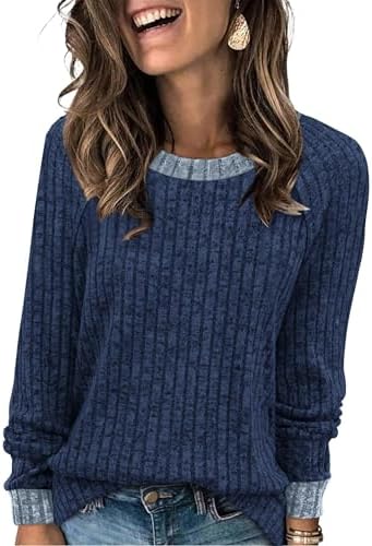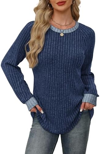 Long Sleeve Shirts for Women Trendy Business Casual Outfits Womens Fall Fashion 2025 Women’S Clothing Workout Tops Crew Neck Spring Break Essentials Maternity Clothes Navy Blue M : Clothing, Shoes & Jewelry