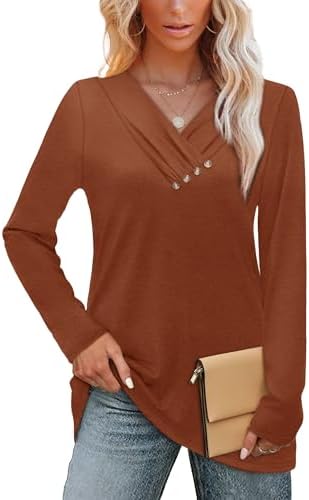 Tunic Tops for Women Loose Fit Dressy Long Sleeve Shirts for Women Business Casual Tops Womens Fall Fashion 2025 Halloween Blouses M Caramel : Clothing, Shoes & Jewelry