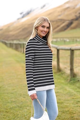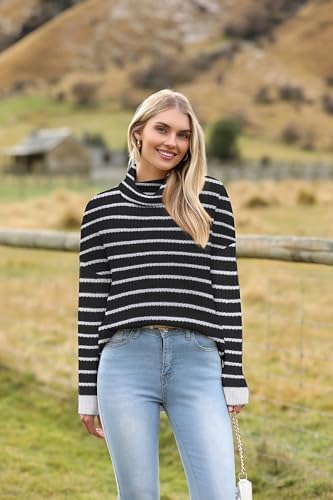 Women’s 2024 Fall Winter Turtleneck Sweater Knit Color Block Pullover Sweater Long Sleeve Lightweight Top : Clothing, Shoes & Jewelry