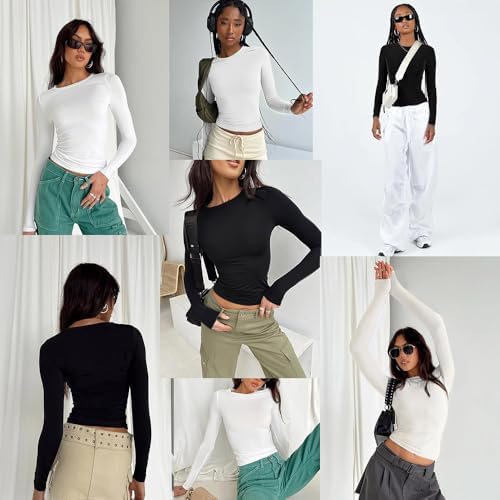 Women’s Long Sleeve Crop Top – Stretchy Comfort Fit, Casual & Workout Wear(Black L) : Clothing, Shoes & Jewelry
