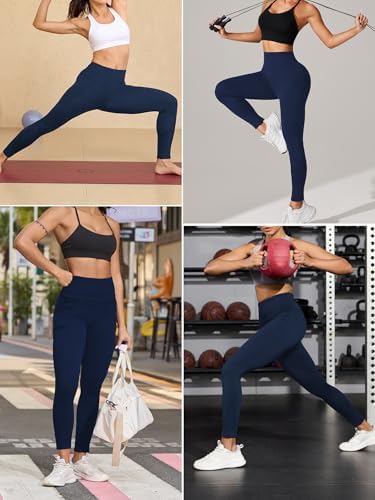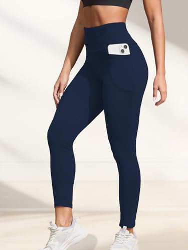 Buttery Soft Leggings with Pockets, High Waisted Tummy Control No See Through Workout Yoga Pants for Women Blue at Women’s Clothing store