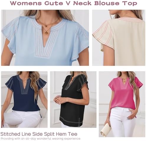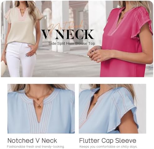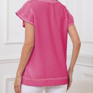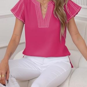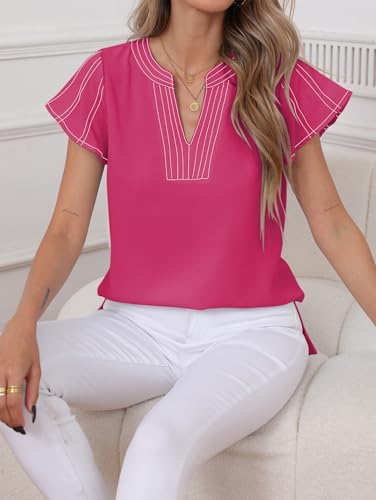 Famulily Womens Tops Summer Tunic Casual Short Cap Sleeve Blouse Slit Notched V Neck Tshirts for Leggings Hot Pink L at Women’s Clothing store