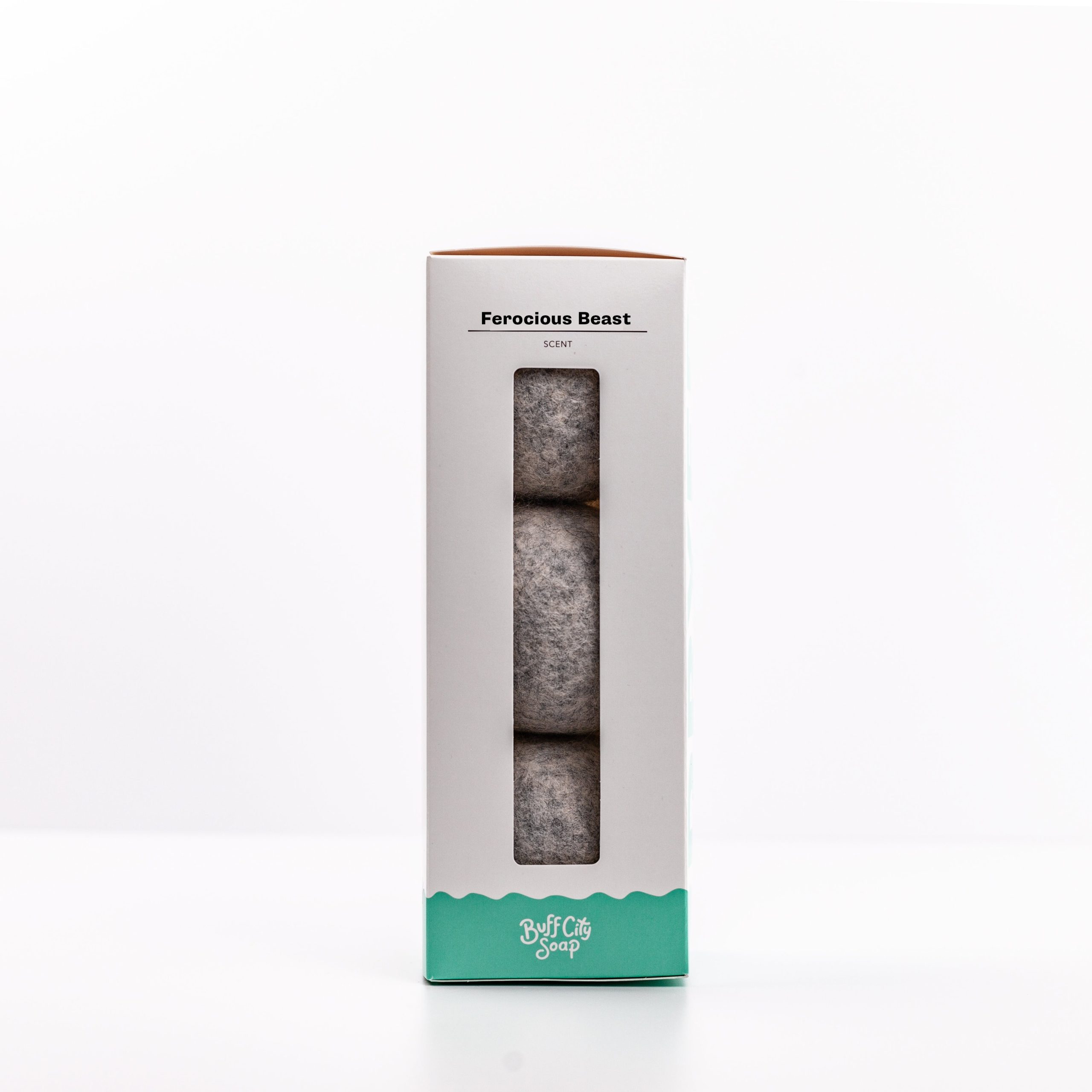 Ferocious Beast Wool Dryer Balls?Made of wool to help reduce wrinkles & soften your clothes.