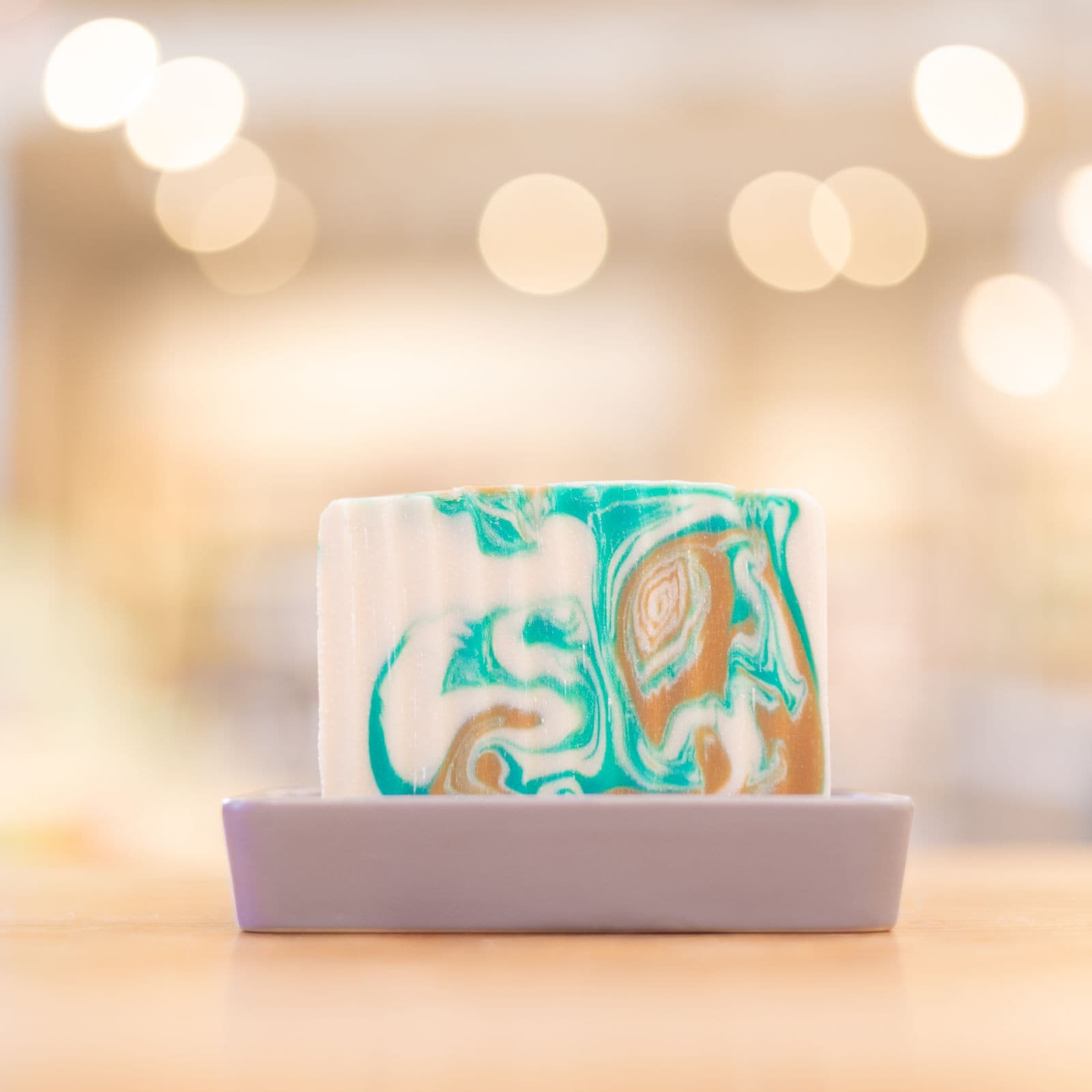 Elevate your bathroom with our elegant Grey Porcelain and Bamboo Soap Dish. The thoughtfully designed wooden slats keep your handcrafted soap bars perfectly dry between uses. while the porcelain base prevents water from spreading across countertops. This neutral grey accessory combines functionality with sophisticated style for any décor.