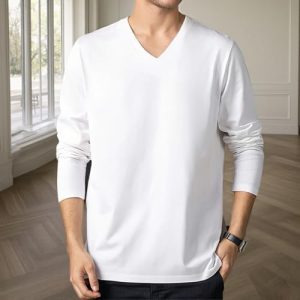 Mens Long Sleeve Tee Shirts, Soft Cotton V-Neck T-Shirt for Men, Thin Casual Long Sleeve Shirts for Men, Black/White/Gray
