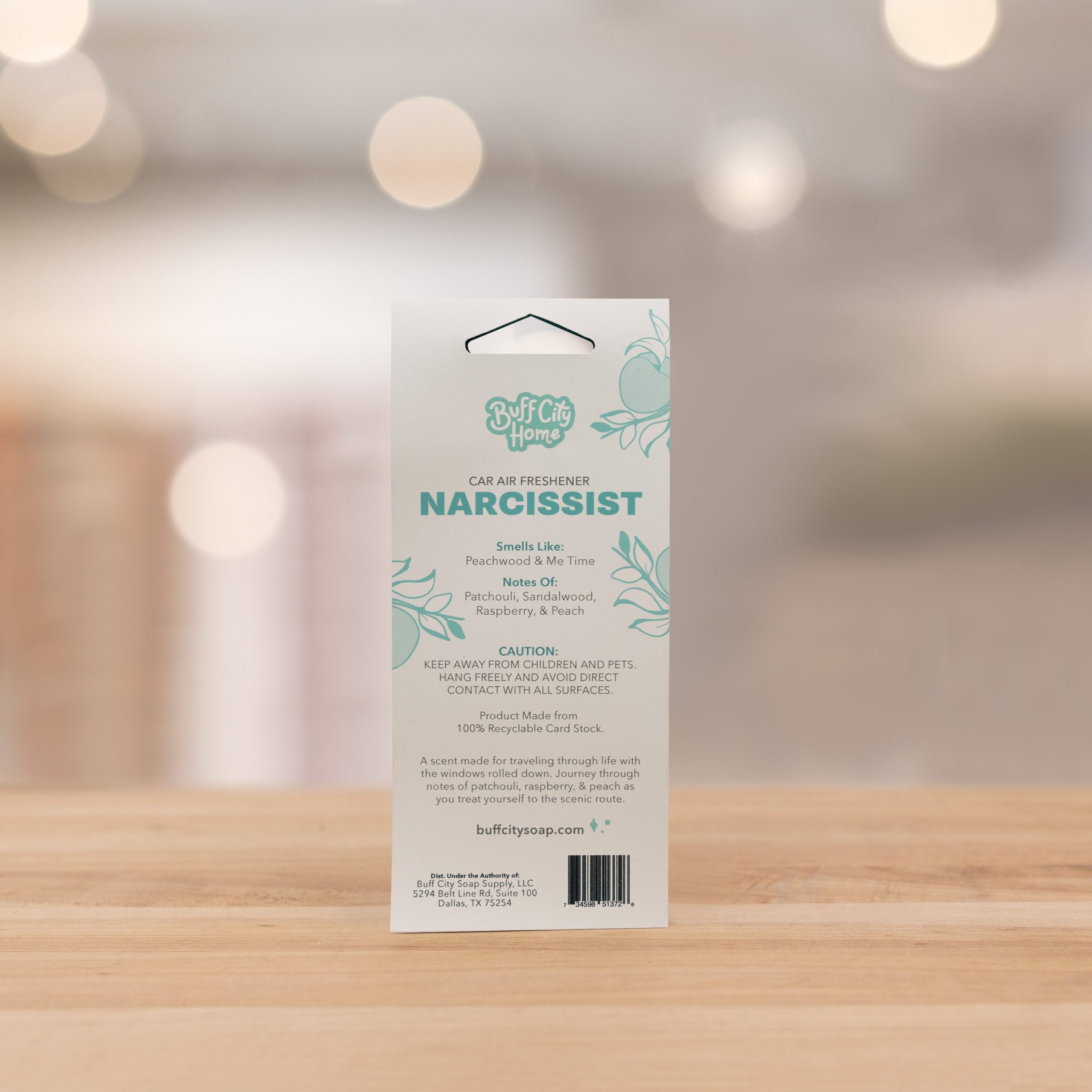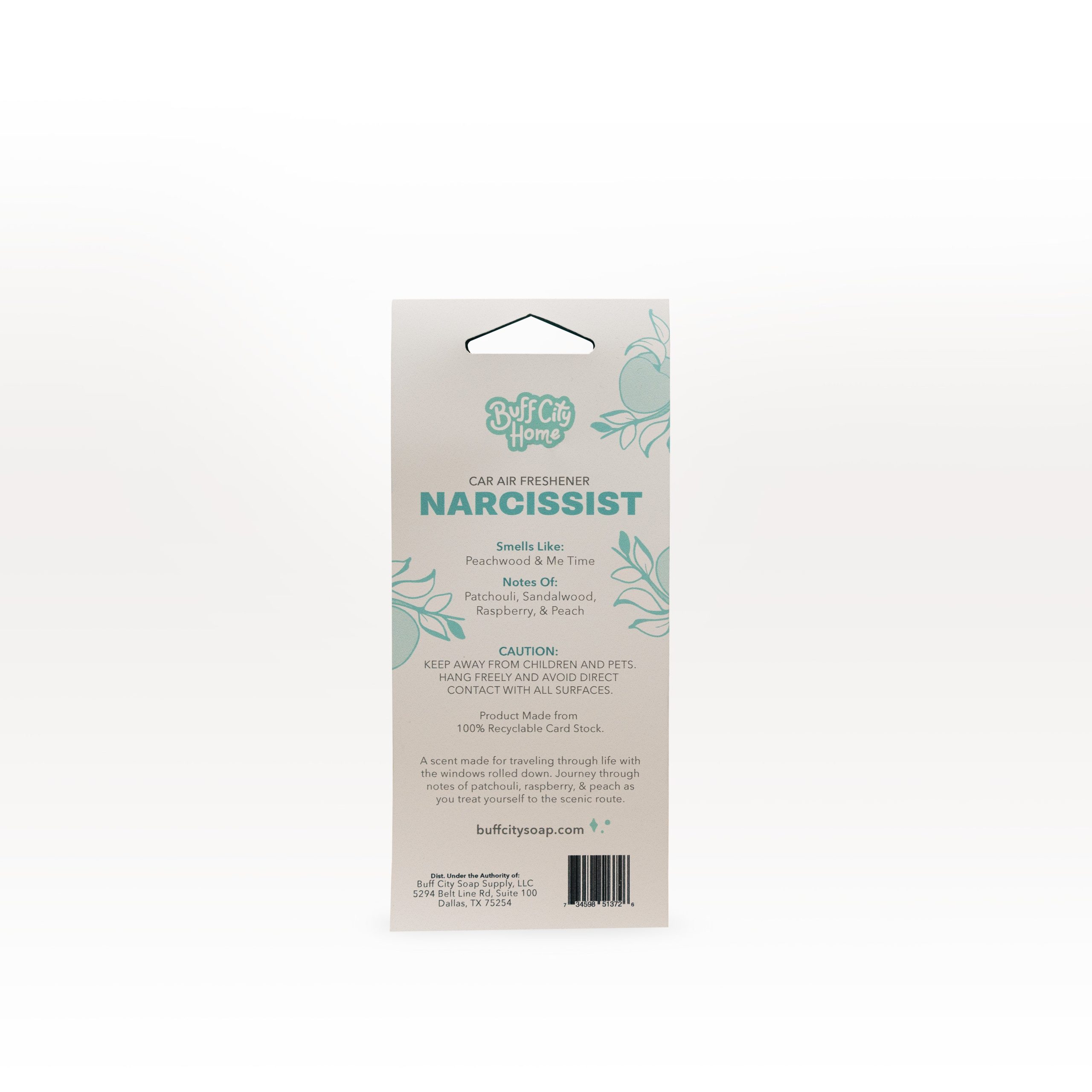 Narcissist Car Air Freshener?A scent made for traveling through life with the windows rolled down. Journey through notes of patchouli. raspberry. & peach as you treat yourself to the scenic route.