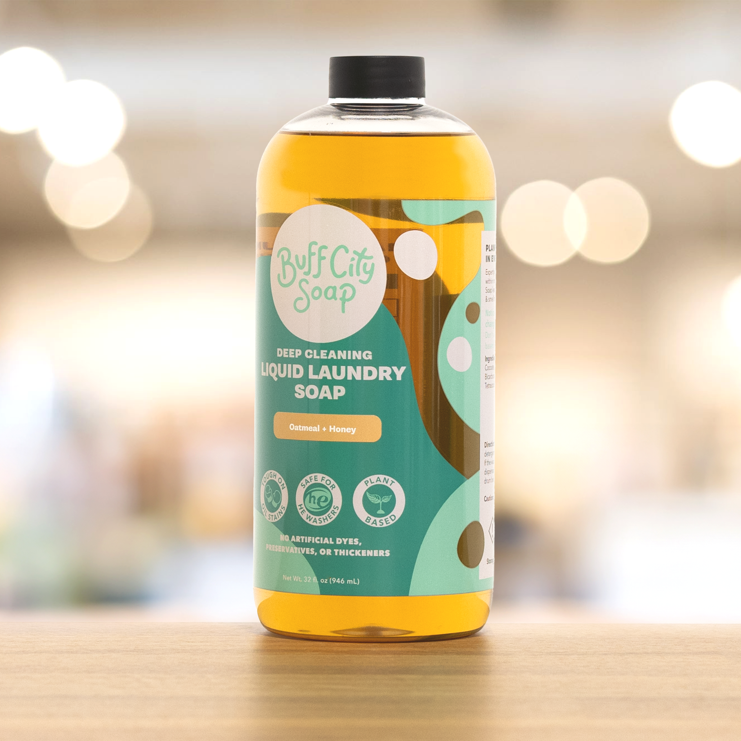 Oatmeal + Honey Laundry Soap Expertly formulated to penetrate stains and lift dirt within minutes. our Deep Cleaning Liquid Laundry Soap leaves behind a clean that you can see. feel. & smell for days.