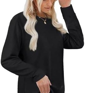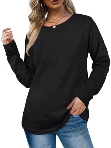 Oversized Sweatshirts for Women Crewneck Fall Outfits Black Tops Long Sleeve Sweaters Winter Clothing XL at Women’s Clothing store