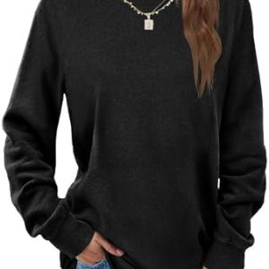 Oversized Sweatshirts for Women Crewneck Fall Outfits Black Tops Long Sleeve Sweaters Winter Clothing XL at Women’s Clothing store