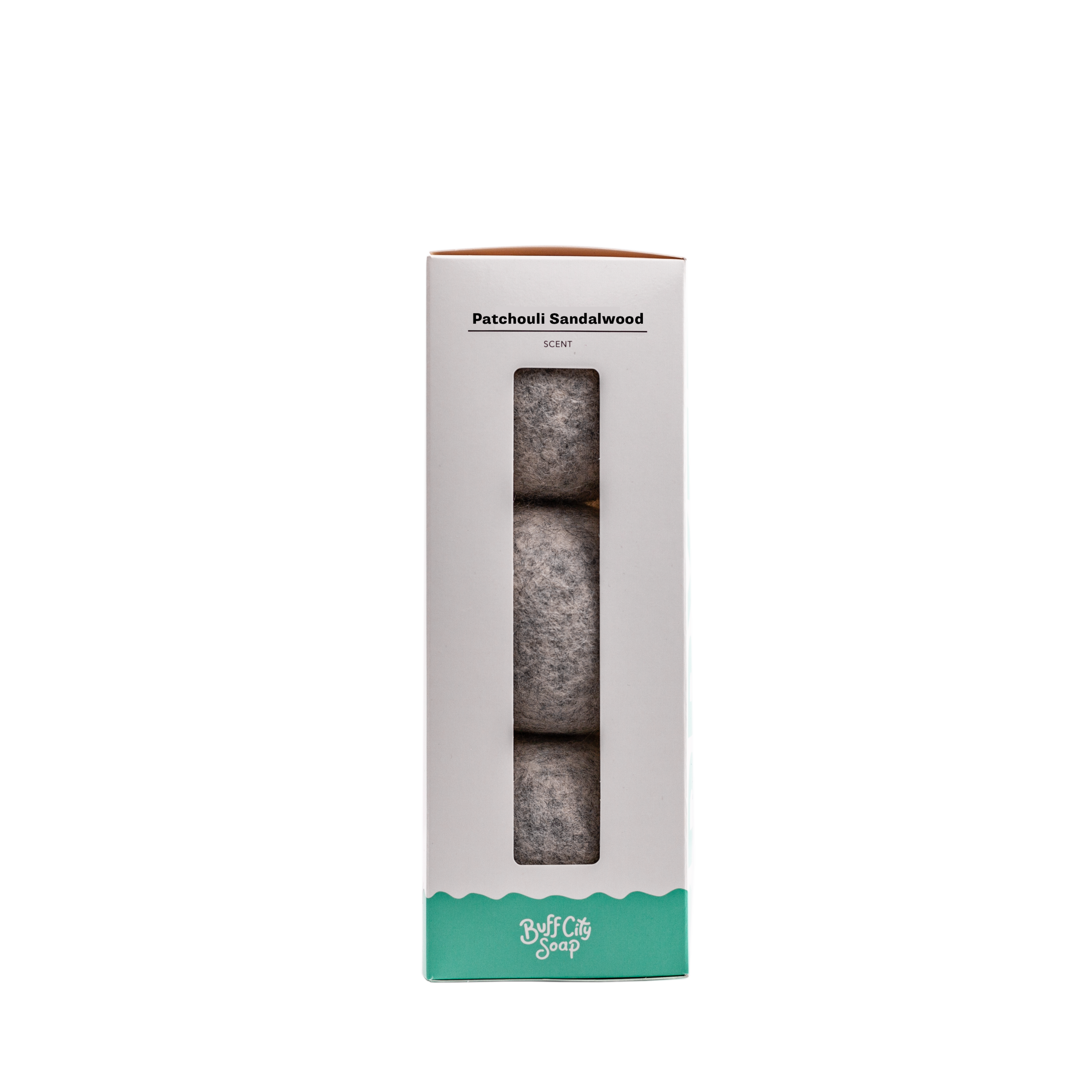 Patchouli Sandalwood Dryer Balls?Made of wool to help reduce wrinkles & soften your clothes.