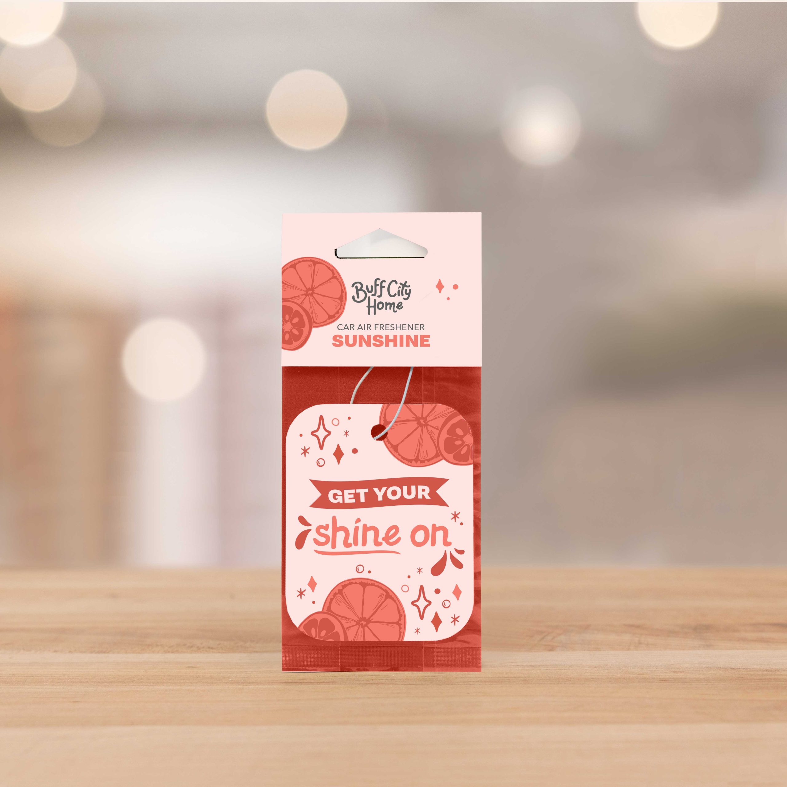 Sunshine Car Air Freshener Perfect for adventure-filled road trips. Notes of vanilla. lavender. & cedar will follow you to distant mountains. cedarwood forests. & wherever life takes you.