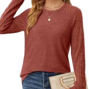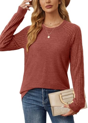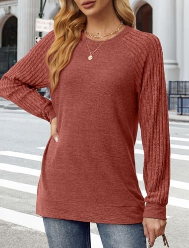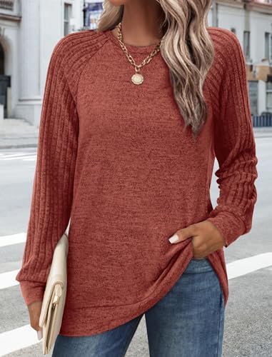Sweaters for Women Trendy Raglan Long Sleeve Tops Fall Outfits Clothes Early Fall Fashion 2025 Tunic Shirts Thanksgiving Outfit Women Caramel XL at Women’s Clothing store