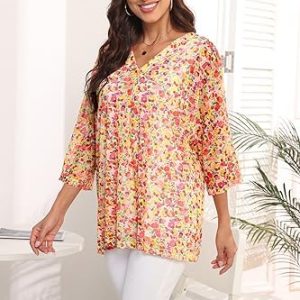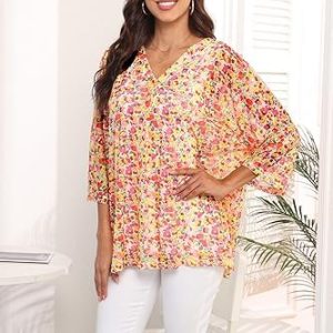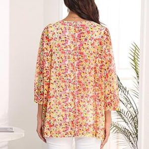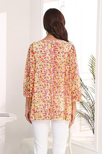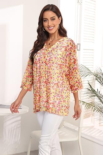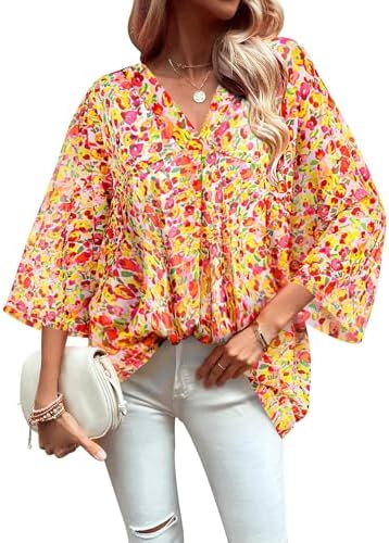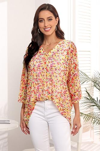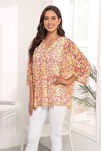 Womens Blouses Dressy Casual Loose Fit Flowy Dolman Sleeve Tops Mesh Shirts Yellow 2XL at Women’s Clothing store