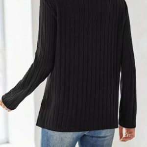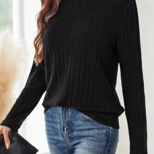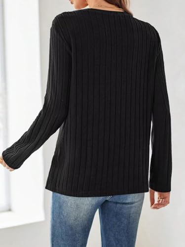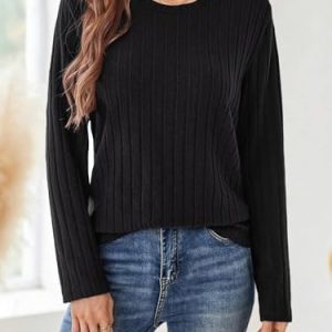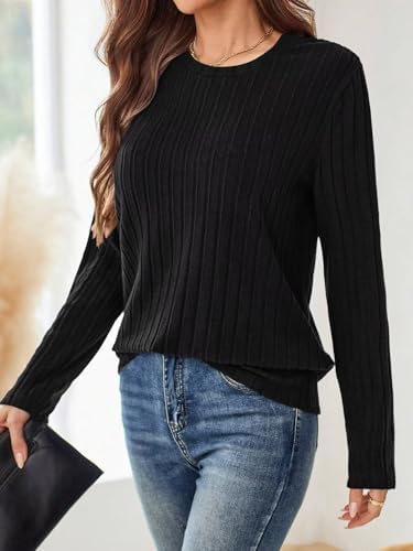 Women’s Crewneck Sweater Tops – Long Sleeve Knitted Casual Fall Winter Blouse(Black) S at Women’s Clothing store