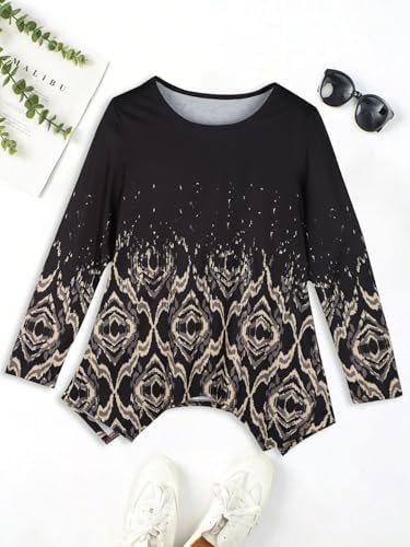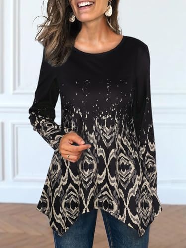 Women’s Long Sleeve Tops Casual Crew Neck Basic Tee Shirts Fall Tunic Tops Blouse Dressy Casual Loose T-Shirts Black at Women’s Clothing store