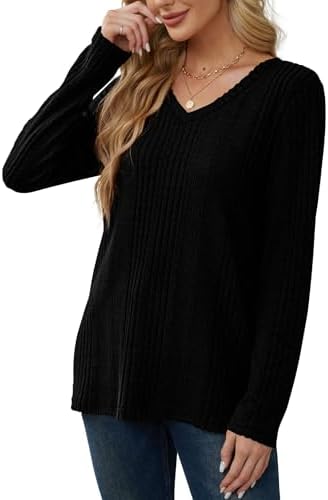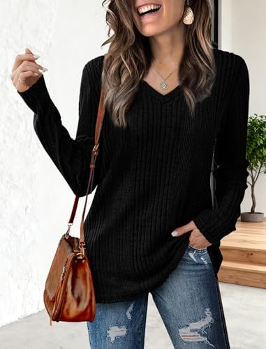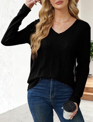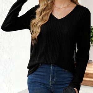 Womens Long Sleeve Tops Casual Lightweight Sweaters V Neck Shirts 2025 Basic Black XL at Women’s Clothing store