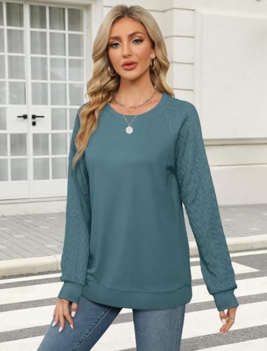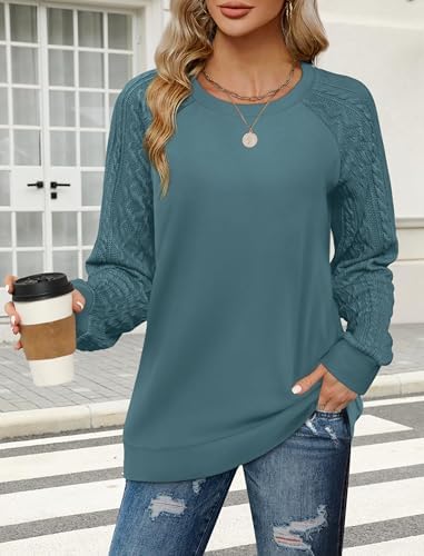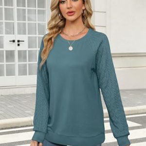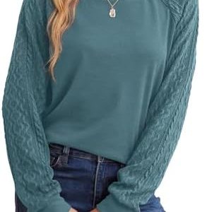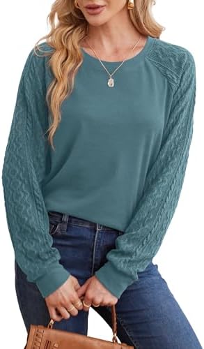 Womens Long Sleeve Tops Fashion Soft Sweaters Business Casual Clothing XL Blue Green at Women’s Clothing store