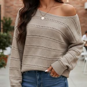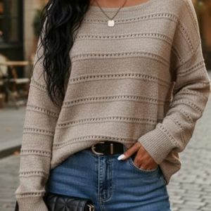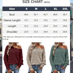 Women’s Loose Casual Long Sleeve Pullover Sweaters Solid Drop Shoulder Knit Sweater Fall Winter Outfit Khaki L at Women’s Clothing store