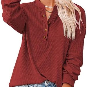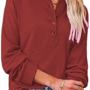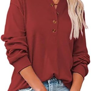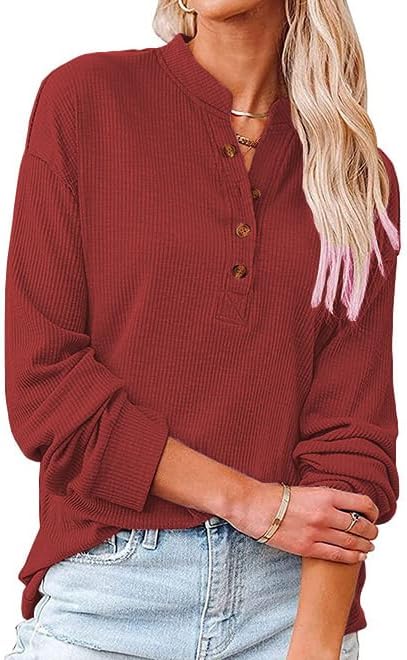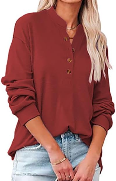 Women’s Trendy Half Button Down Sweatshirts Lightweight V Neck Long Sleeve Pullover Tops Casual Fall Clothes Wine at Women’s Clothing store