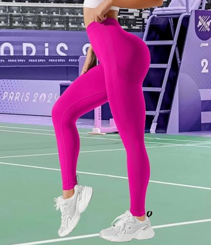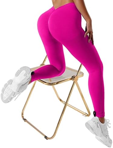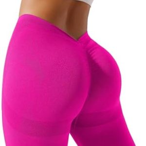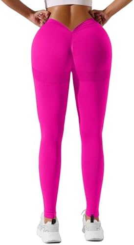 Women’s V Back Scrunch Butt Lifting Leggings Seamless Impact Running Sweatpants High Waisted Tummy Control Yoga Pants Rose Red at Women’s Clothing store