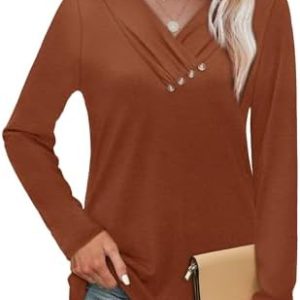Tunic Tops for Women Loose Fit Dressy Long Sleeve Shirts for Women Business Casual Tops Womens Fall Fashion 2025 Halloween Blouses M Caramel : Clothing, Shoes & Jewelry