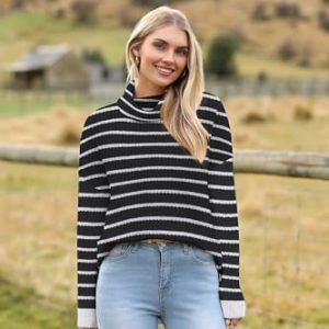 Women’s 2024 Fall Winter Turtleneck Sweater Knit Color Block Pullover Sweater Long Sleeve Lightweight Top : Clothing, Shoes & Jewelry