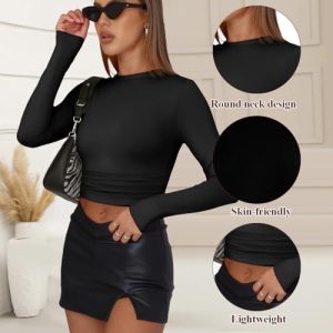 Women’s Long Sleeve Crop Top – Stretchy Comfort Fit, Casual & Workout Wear(Black S) : Clothing, Shoes & Jewelry